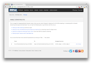 Now we need to set up the routes for taking content from origin via edge to the client. Go to Control / Edit Nimble Routes menu.