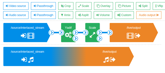 Live Transcoder for Nimble Streamer allows using various FFmpeg filters for transforming content.